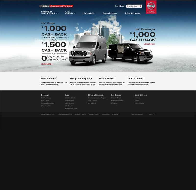 Nissan Commercial Vehicles is, you guessed it, the commercial branch of Nissan. They manufacture a series of fantastic work vehicles that you’ve undoubtedly seen all over town–as soon as you know what one looks like, you can’t stop seeing it. I had the pleasure of working with a small team from Critical Mass to redesign the site and introduce a lot of new campaigns to showcase how Nissan was making an excellent work vehicle.